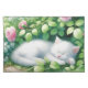 Sweet White Kitten Napping under a Rose Bush Cloth Placemat