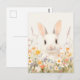 Sweet White Rabbit in Spring Meadow Postcard