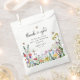 Adorable Birthday Party Favor Bags - design features a variety of colorful watercolor wildflowers and cute little bumble bees. The template includes the cute saying 'Thank you for bee-ing at my party' with a combination of calligraphy script and serif fonts. Matching items available in our 'Sweet to Bee One' Collection