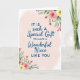 This card features a tender message on a blush-pink background with a softly diffused, watercolor-like wash that feels gentle and affectionate ❤️. Centered on the front, the wording reads “IT IS such A Special Gift TO HAVE A Wonderful Niece LIKE YOU,” arranged in stacked lines for easy reading. Most of the lettering appears in deep blue, mixing a straightforward, sturdy print style for emphasis with a flowing cursive-like style for the more affectionate phrases. The layout leaves generous breathing room around the text, like a quiet pause that lets the words land with warmth. In the top-right corner, a small floral cluster of rosy pink and creamy yellow blossoms leans inward, as if reaching toward the message. A matching bouquet sits in the bottom-left corner, with muted sage-green leaves and tiny red berry-like dots that add a soft spark 🌼. The flowers have translucent, painted edges and light shading, with the corner arrangements framing the blue text diagonally across the pink field.