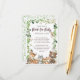 Woodland animals gender neutral baby shower design featuring a botanical leaf frame with an owl, bear, fox, beaver, raccoon, deer and bunny rabbit. Flip our design over to view a coordinating leaf back for an extra special touch.