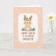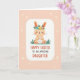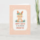 This design shows a long-eared woodland bunny 🐰 in light brown and cream, sitting calmly with eyes closed as if savoring a quiet moment meant for someone close. A small flower crown of blue, yellow, and pink blooms with green leaves rests on its head, adding a gentle springtime touch 🌷. The bunny’s rosy paw pads peek out as it holds an oval egg decorated with soft teal, rose, and pale green stripes, like a sweet gift being hugged tight. Short tufts of green grass sit beneath it, grounding the scene in a simple outdoor setting. The main illustration sits inside a wide, soft-edged off-white rectangle that keeps the focus centered. Behind that, a peach background is dotted with slightly lighter, uneven polka dots for a light texture. Below the bunny, a friendly holiday message appears in a casual handwritten-style look, with the main words in warm rust and smaller accents in charcoal. The text is centered under the off-white panel, with the bunny and striped egg framed neatly above it.