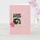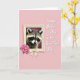 The front design shows a small furry woodland animal with a dark “mask” pattern around its eyes, looking straight ahead with a tender, trusting gaze that feels like a quiet shared moment ❤️. A cream-toned, antique-style frame with soft curves surrounds the portrait, giving it a cozy, old-fashioned look. At the lower left of the frame, a full fuchsia-pink peony sits with layered petals, green leaves, and a pale ivory bow, adding a gentle romantic flourish 🌼. The background is an even pastel pink that wraps the whole scene in soft warmth. On the right side, a short loving message appears in white lettering, set against the pink so it stands out clearly. The animal’s fur is finely detailed, with light and shadow that make it look touchable and close. Near the upper right corner, a faint, translucent heart shape rests lightly over the pink backdrop.
