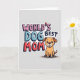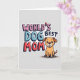 This card features a big, friendly message that reads “WORLD’S BEST DOG MOM” in large letters across the center-left, with “WORLD’S” arcing in bubblegum pink, “DOG” in ocean blue, and “MOM” in bright red. The words are outlined in a dark stroke with gentle shading that gives them a slightly raised look against a soft gray background. To the right of the text sits a cute cartoon dog in warm tawny orange with chocolate-brown ears, angled as if it’s leaning in close like a loyal buddy ❤️. Its wide dark eyes and open smile, with a tiny pink tongue showing, create a sweet, affectionate look that feels like a shared inside joke between pet and owner. A light blush on the dog’s cheeks adds a tender, friendly warmth, like it’s soaking up praise 🌼. The whole design is framed by a smooth white border that makes it look like a sticker-style badge. The dog’s rounded paws and soft curves are outlined in dark lines, with small highlights on the face and ears to emphasize its cheerful expression.