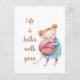 Adorable watercolor illustration features modern girl in blue dress sweetly hugging a large ball of yarn. Quote in light brown script: "Life is better with yarn". The perfect gift for knitters, crocheters, and other true fiber fans.