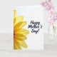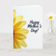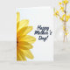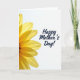 Designed with a tall, eye-catching layout, the card pairs a large yellow flower on the left with wide white space on the right. The bloom resembles a daisy or sunflower, with sunlit petals spreading outward from a dark, detailed center, and the layers of petals overlap like a gentle embrace ❤️. Light seems to pass through the petal edges, creating soft shifts from golden yellow to paler tones and faint shadows where they meet. The right side stays mostly white, giving the design a calm, open feel, like a quiet moment shared between loved ones. Near the center-right, the message “Happy Mother’s Day!” appears in dark blue lettering, standing out clearly against the bright background 🌼. The text sits comfortably in the open area, with smooth, flowing strokes and a slight upward lift that adds warmth without crowding the flower. The dark center of the flower is textured with tiny clustered shapes, framed by long petals that reach toward the white space.