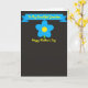 This greeting card features a deep charcoal background that makes the bright details feel close and affectionate ❤️. Near the top, an azure ribbon stretches across with small white dashed lines along its edges, like careful stitching. Centered on the ribbon is a short greeting in sunshine-yellow lettering, standing out clearly against the blue. Beneath it, a simple flower sits in the middle, with five soft sky-blue petals gathered around a golden-yellow center, suggesting a gentle, caring exchange. Lower on the card, a second line of text appears in the same yellow, spaced with plenty of dark room around it so the words feel calm and unhurried 🌼. The layout uses lots of open space below the flower, keeping the focus on the small details and the tender tone they create. At the bottom, the dark background remains mostly empty, with the yellow message line floating above the lower edge.