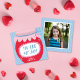 This modern and sweet Valentine's Day classroom photo card features a sky blue polka dot background with a cute illustration of a jar of jam, with the greeting that says "you are my jam". The back of the card has the same blue and white polka dot background and a square photo. This small size is perfect for a classroom Valentine's exchange!