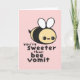 Super cute baby honey bee on a pink background. "You're sweeter than bee vomit," he says. You can keep the text inside "Honey, I've pollen for you." or replace it with your own saying.