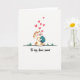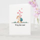 This card features an upright, human-like bunny centered on a bright white background, drawn with soft shading and a gentle, friendly expression 🐰. Its rounded body is dotted with small brown spots, and its cheeks are lightly pink, giving it a bashful look that suggests closeness and affection. The bunny sits on a thin dark line that hints at a simple patch of ground, keeping the setting minimal and focused. In its paws, it cuddles a sky-blue egg decorated with tiny yellow stars, held close like a treasured gift for someone special 🌷. Above the bunny, several small red hearts float upward in a loose cluster, like a quiet exchange of affection in the air. Near the bottom, the phrase “To my dear sweet” appears in flowing lettering, partially cropped as if it continues inside, and it’s set in a dark tone that stands out against the light background. The hearts are bright red and scattered above the bunny’s ears, while the starry egg rests against its belly at the center.