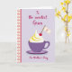 This card features a sweet still-life illustration centered on a stylized purple cup holding a tall swirl of creamy white and pale yellow topping, like a shared treat meant for someone dear ❤️. A bright red cherry sits on top, adding a romantic little pop of color, and a tiny flag with an abstract floral pattern leans in as if gently celebrating her. The background is a soft lavender wash with faint pale pink blossom shapes drifting behind the main image, giving the scene a calm, affectionate glow. Along the left edge, a vertical border of white circles on a coral-pink strip is outlined by a thin deeper-pink line for extra contrast. Near the top, the message “To the sweetest Gran” appears in a flowing, elegant style, set in a dark ink that stands out against the light background. Beneath the cup, “On Mother’s Day” is placed in the same style and color, balanced neatly under the illustration 🌼. The overall layout feels like a gentle invitation to pause and smile, with the cherry and tiny flag drawing your eye upward. The cup sits centered on the page, framed by the lavender field, the pale blossom silhouettes, and the coral left border.