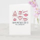 Designed with a soft tea-party scene in blush pinks, creamy whites, and rosy red outlines, this card places sweet treats and cozy tableware against a bright white background. Near the top, a tall cupcake stands proudly with a red heart on its frosting and tiny sprinkles, sitting close to a smaller slice of cake like a friendly pair sharing a quiet moment ❤️. Nearby, simple teacups, a rounded teapot, and a slender spoon are arranged neatly, each marked with a small heart that suggests tender care between loved ones. Small hearts drift around the objects like light confetti, adding gentle motion across the open space. At the bottom, the message “HAPPY MOTHER’S DAY TO the sweetest grandma!” is set in flowing pink lettering, with the main words larger and the rest tucked closely beneath. The overall layout feels airy and affectionate, with plenty of white space framing the desserts and tea set 🌼. Scattered mini hearts in rosy red dot the background around the cupcake, cups, and teapot.