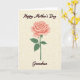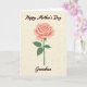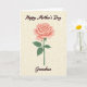 This card features a single soft pink rose at the center, its layered petals curling inward like a gentle embrace ❤️. Blush tones and subtle shading give the flower depth, creating a quiet, affectionate mood without needing extra details. A slender deep-green stem drops straight down from the bloom, with two pairs of green leaves that feel calm and steady, like a caring presence nearby. The background is a creamy beige with a faint speckled texture that keeps the scene from feeling flat. Across the top, the words “Happy Mother’s Day” sit in a flowing, cursive-style lettering in warm brown. Near the bottom, “Grandma” appears in the same warm brown, centered beneath the stem as a sweet, grounded sign-off 🌼. The overall layout stays balanced and uncluttered, letting the rose carry the tender tone through its soft curves and gentle color transitions. The petals show a spiral arrangement with blush pink edges and slightly darker shading tucked into the folds.