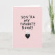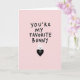 This card features a soft pastel pink background with a large, clear message centered near the top in thick black lettering. The words sit with plenty of open space around them, giving the design a calm, uncluttered look. Beneath the text, a simple white bunny face 🐰 peeks in with long upright ears, tiny black eyes, and a small nose and mouth that feel gentle and shy. The bunny leans over a solid black heart, as if cuddling close to it in a quiet, affectionate way. Inside the heart is a second small animal face, drawn in minimal white shapes, with round eyes, a tiny triangle nose, and short whiskers that suggest a sweet, friendly companion 🐇. The contrast between the white bunny, the black heart, and the pink background makes the figures look like they’re sharing a tender moment right under the headline. The black heart sits centered below the text, with the little face framed neatly inside it.