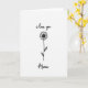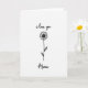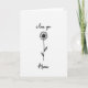 This design shows a simple black line flower centered on a wide white background, giving the whole card an airy, intimate look. The bloom resembles a daisy or small sunflower, with thin petals radiating outward and a lightly textured center that feels gently sketched. Above the flower, the words “i love you” appear in a flowing black style, like a soft note written to someone close ❤️. Below the stem, “Mama” sits in black as well, placed neatly to balance the message and keep the focus on her. The strong contrast of black on white keeps everything calm and quiet, like a tender pause between two people who care about each other. With so much open space around the drawing, the message reads like a private whisper, and the flower becomes a small stand-in for affection 🌼. The composition stays uncluttered, with the text stacked above and below the central illustration. The thin black petals and the small shaded center remain the main visual detail in the middle of the page.