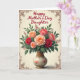 This design shows a tall, vertical bouquet of roses arranged like a loving gift, with peach, soft coral, and deep crimson petals leaning into each other as if in a gentle embrace ❤️. Fresh green leaves and slender stems fill out the arrangement, dotted with tiny berry-like clusters that add a sweet, friendly touch. The flowers sit in a creamy ceramic vase decorated with small pink painted blossoms that echo the blooms above. Around the vase neck, a rustic rope wrap adds texture and a cozy, down-to-earth contrast. Near the top, a warm looping message appears in a dark, earthy tone, centered above the bouquet for easy reading. An ornate, vintage-style border with scrolling details frames the scene in a muted brown against a soft cream background, keeping everything calm and romantic 🌼. The lighting stays soft and diffused, with faint shadows under petals and along the vase that give the illustration depth. The border’s fine curls and filigree sit evenly along all four edges, with the bouquet centered beneath the text.