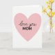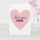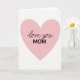 Designed with a large pastel pink heart centered on a bright white background, this card keeps the scene simple while still feeling tender ❤️. The heart fills most of the front, with smooth, rounded edges that draw your eye inward. Inside the heart, the words “love you” appear near the upper middle in a flowing, handwritten-style cursive, like a quick note left with care. Just below, “MOM” sits in strong uppercase letters, giving the dedication extra emphasis without adding clutter. All the lettering is black, standing out clearly against the soft pink and keeping the message easy to read at a glance. The wide white space around the heart adds a calm, airy setting, like a quiet moment shared between close family 👩. A faint paper-like texture shows through the white background, while the pink heart remains smooth and solid in the center.