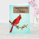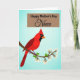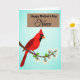 Designed with a serene sky-blue gradient background, this card features a striking red bird shown in profile, its pointed crest and dark face marking creating a tender, attentive look as if it’s watching over someone dear ❤️. The bird’s bright orange beak stands out against the rich red feathers, adding a warm, affectionate contrast. Purple feet curl gently around a stylized brown branch that stretches along the lower portion of the design, giving the scene a calm, close-to-nature setting. Small green sprigs and white blossoms with sunny yellow centers dot the branch, like little springtime gifts offered in friendship 🌼. Near the top, a warm muted-brown rectangular banner holds the main message, centered and easy to spot. The primary line appears in a classic serif style in a light cream tone, with a smaller decorative line beneath it in a darker shade for contrast. Crisp, simple shapes and smooth edges keep the illustration tidy and focused on the bird, branch, and blossoms. The white flowers cluster most densely near the right side of the branch, with a few petals angled upward toward the banner.