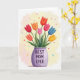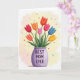 Designed with a cheerful bouquet of spring flowers gathered in a simple vase, this illustration feels like a warm hug shared between close family or friends ❤️. Curved petals fan outward in red, orange, pink, blue, and yellow, and the blossoms lean toward one another as if in a tender, affectionate cluster. Green stems rise from the vase in soft arcs, giving the arrangement an easy, flowing shape. The vase is a gentle lavender color, and the message “BEST MOM EVER” sits centered on its front in dark purple lettering. Behind the flowers, a pale yellow and cream background looks like a light watercolor wash, adding a sunny, calm setting 🌼. Small round dots scattered across the backdrop in pink, orange, blue, and yellow add a celebratory sparkle without crowding the main bouquet. The petals show subtle shifts in shade and highlights, and the confetti-like dots are spaced unevenly across the upper and side areas of the background.