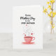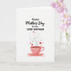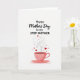 This Mother's Day card features a simple digital illustration on a bright white background, with a tender, affectionate mood built into the gentle shapes and soft colors. Near the top, a large flowing main phrase sits centered, and beneath it a smaller dedication line appears in neat, easy-to-read lettering. The text is set in deep red, drawing the eye first and setting up a warm, caring tone ❤️. In the lower center, a pale pink teacup rests on a matching saucer, decorated with fine floral details that feel calm and comforting. From the cup, light dashed loops of steam curl upward like a soft embrace, guiding you back toward the words above. Mixed into the steam are small red hearts and tiny crimson sparkles that rise as if carrying a sweet, close bond into the air 🌼. The cup’s curved handle, the saucer’s thin rim, and the scattered heart shapes stand out clearly against the open white space.