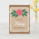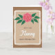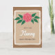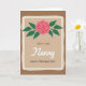 This greeting card features a soft beige center panel with a lightly mottled, aged-paper look, set inside an uneven, torn-edge frame in creamy off-white, all resting on a warm brown background. Near the top sits a blooming flower with layered pink petals curling inward, edged with a thin red outline, like a gentle hug held in place. Deep green, oval leaves spread out evenly beneath the blossom, guiding your eyes downward in a calm, affectionate flow. The words “With Love” appear below the leaves in a thin, flowing style in dark ink, adding a quiet romantic touch ❤️. Centered and larger, “Nanny” is written in a sweeping cursive look, giving the name extra attention without feeling loud. At the bottom, “HAPPY MOTHER’S DAY” is set in uppercase letters in the same dark tone, neatly grounding the layout 🌼. The flower’s pink spiral petals and the symmetrical fan of green leaves stand out crisply against the soft beige panel.