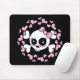 Cute skull and crossbones with bow is surrounded by pink hearts.