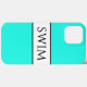 This fun sporty design features SWIM text inside a wide white center stripe against bright aqua background. The text and colors can be personalized.