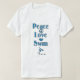 Swimmers, supporters, families, and coaches, will love this tee. Makes a great tee for team shirts, or to sell at meets. The front says, "Peace - Love - Swim" with a peace sign, heart, and swimmer. Great gift!