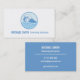 A business card with a blue modern line art of a swimmer with googles and swim cap swimming among the waves. Perfect for swimming instructors and lifeguards who are holding swimming lessons. Personalize easily with your iswnformation in the text templates provided.