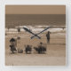 Swimmers on Beach epia-tinted Photograph Square Wall Clock