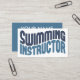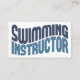 A bold Swimming teacher business card that says "Swimming Instructor" in shades of blue. Feel free to change the background colors to anything you like.