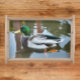 For nature and wildlife fans! Serve up a warm meal on this attractive, wooden serving tray that features the photo image of a swimming male Mallard duck on a pond. Select from natural or black tray along with tray size. Large tray style best accommodates standard size dinner plate.