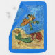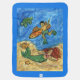 Art shows a mermaid in the ocean with a child, sea turtle, and fish.