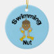 Swimming Nut text with a funny acorn nut wearing goggles and flippers is a funny swimming design for swimmers, divers and swim team coaches.