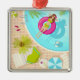 Swimming pool girl in bikini summer beach metal ornament