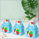 Fun pool party favors for guests, featuring a colorful beach ball floating in swimming pool. Add text to personalize.