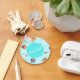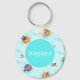 Cute ice blue color theme of a pool party with funky illustration design of pool toys and people having fun in a large aquamarine pool. Perfect for a Summer vacation holiday vibe. With personalised name optin for a gift for a swimmer.