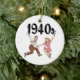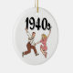 Round ceramic ornament with "1940s" boldly inscribed across the top and an image of a couple swing dancing. The back is white with optional text. See the entire Patriotic 40s Ornament collection in the PARTY FAVORS section.