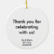 Lightweight, smooth, pure white ornament with nice sheen. Perfect size to be seen from across the room ... and to attract closer inspection! Price was great for ordering enough for the whole family! Clear, bold black design just as requested. Matches the order exactly. Just so nice!