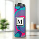 Pink, Purple and Teal Swirl pattern with black monogram initial framed in a white and black box.