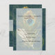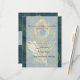 Part of a complete wedding collection. Features close-up artwork of a peacock feather in colors of cobalt blue, teal and celadon green. Background in dark blue with a vintage wash and swirl design. © 2010 www.CustomInvitesOnline.com