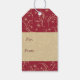 Pretty gold stars and swirls cover the bright red background on the front and back of this festive gift tag. A semi transparent gold banner holds your custom text in dark red on both sides. Make it say whatever you'd like!