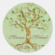 COLOR SELECTION: This design features soft sage green, tan, brown, chocolate brown and green. DESIGN: These fun seals or sticker can be used many ways for your wedding shower, bridal shower or reception decor. Use a toothpick and a slightly larger cardstock backing and you have cupcake toppers! You can also use them for favor gift bag seals, to decorate purchased favor gift boxes or to create napkin rings by making a strip to wrap the napkin and then use the seals to finish it off. Designed to match the wedding invitations set of the same name, this Reception Invitation is available in several sizes. The artwork for this elegant, formal yet somewhat rustic wedding invitation invite is hand water colored by Audrey Jeanne Roberts. The background is an aged vintage style parchment, lighter on one side and in deeper tan tones on the reverse. The swirl tree has a heart in the center of its trunk, its branches are swirls and at the end of each branch is a set of green leaves. Each leaf is a slightly different color of green. On one side is the text of your wedding invitation which is easily customized and personalized via the template. On the other side your names and wedding date are on either side of the heart on the tree trunk.