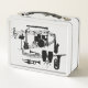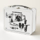 This is a standard metal lunchbox that appears to work just fine. We designed this box ourselves with an uploaded photo and custom text on the front and back. It looks absolutely beautiful except the front of the lunchbox is not centered like it shows in the photo. The print borders don't align with the inset flat part of the box where the preview photo online showed it perfectly centered in there. The back looks nice and centered though.