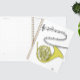 This planner features a golden color French horn drawing with a swirled music staff in the background on the front and back. In the lower right-hand corner on the front is a place to personalize with initials. On the back is the swirled music staff by itself.