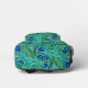 There's a fun modern swirled peacock feather pattern on this bag that is attractive for both kids and adults. Colors used include royal blue, green, and pale gold on a teal background. At the center is your triple monogram in black, which is placed on an oval banner lined in black. Colorful!