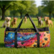 This colorful pattern duffle bag features a mesmerizing swirling cosmic design in vibrant hues, liberally accented with classic black paw prints and twinkling stars. It's a unique and stylish pet accessory, perfect as a travel storage carrier for any pet lover.