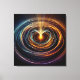 A mesmerizing display of swirling light waves emanates from a central glowing point, creating a dynamic, circular pattern in vibrant blue, orange, and yellow hues. The intricate lines suggest motion and energy, resembling a cosmic or abstract digital phenomenon.