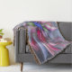 A quality printed throw has its advantages. This is a much finer weave throw than its loopier cousins, and though lighter, it is worth the investment for custom room accessorizing. The back is much prettier than the typical brown, and the fringe on the long sides very vivid, the selvage nicely done. Before photographing, I washed the throw in cold water, delicate, with a thicker woven throw the same size. On tumble dry low, this throw was dry in half the time as the other. This is a very practical quality if you use throws for furniture covers or to wrap up in frequently. The sleekness of the fabric makes it a great layer for accenting or protecting without the feeling of sitting on too much stuff. Perfect for napping or when you feel a light chill coming on. The color printing is beautiful and on this fabric, matched the design and color of my Photoshop image. This is an advantage for blending room fabrics and colors. The fringe on the short sides prints the colors from the design image and therefore varies from the side fringe. I streaked a white fractal line through the plaid pattern to give the illusion of weaving. This printed as crisp as an illusory thread, and put some white in the short side fringe, showing another advantage of print vs loomed- for artistic purposes, line lines, detail, and color integrity can be planned and preserved. My loomed throws have color limitations and more of a needlepoint texture. Print throws reproduce an exact image. The throw felt a little stiff straight out of the package, but this went away in the first delicate wash. Of course I searched the wash water for ink or bleeding and there was none.
