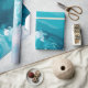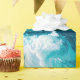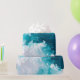 The image presents an abstract depiction of ocean waves, rendered in shades of turquoise, teal, and white. The waves appear dynamic and textured, with swirling patterns and foamy crests. The color palette evokes a sense of freshness and tranquility. The overall composition is fluid and organic, resembling a close-up view of turbulent water.